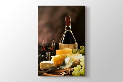 Keyifli bir akşam geçirmek için bir kadeh kırmızı şarap eşliğinde leziz peynirler ve taze meyveler tercih ediyorsanız bu manzaranın görüntüsü de size keyif verecektir. Siz de keyfinizin görüntüsünün tadını bu kanvas tablo ile her gün çıkarabilirsiniz.