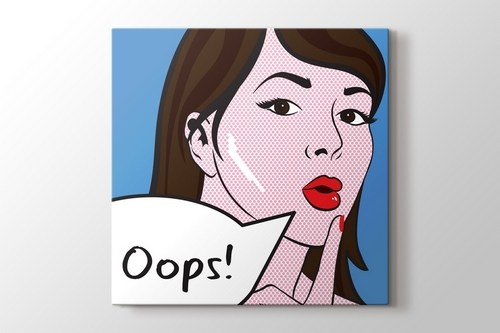 Mavi fon kırmızı dudaklar Oops! Lichtenstein'ın tarzını yansıtan Pop Art bayan figürü herkesin ilgisini çekeceği kesin. Pop art çalışmalar tekstilde de çok tercih edilen çalışmalardır. Görünümleri ile birçok insanın ilgisini çekmektedirler. İster evinizin duvarlarında bu orijinal çalışmaları kullanın, isterseniz iş yerinize renk katmak için duvarlarınıza asın.